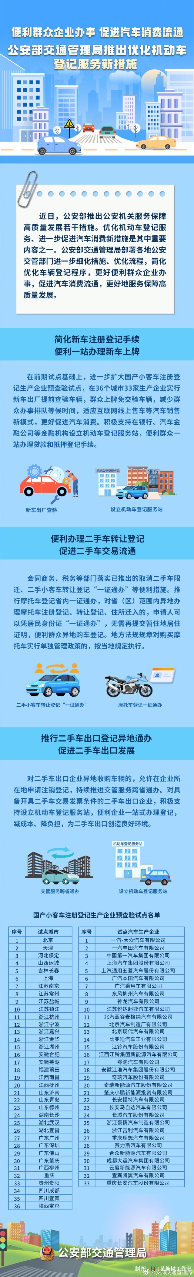 公安部交通管理局部署各地公安交管部門(mén)進(jìn)一步細(xì)化措施、優(yōu)化流程,簡(jiǎn)化優(yōu)化車(chē)輛登記程序,更好便利群眾企業(yè)辦事,促進(jìn)汽車(chē)消費(fèi)流通,更好地服務(wù)保障高質(zhì)量發(fā)展。