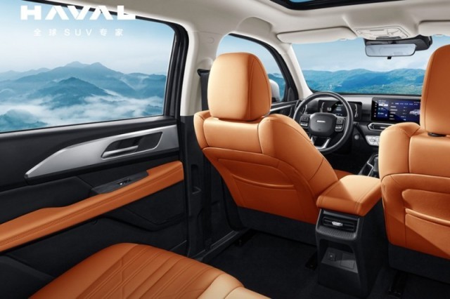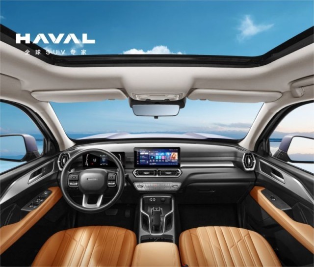 新哈弗H5內(nèi)部采用較為簡潔的設(shè)計風(fēng)格,并使用雙拼配色,還在中控臺及門板等處使用軟質(zhì)材料進行包覆。與此同時,新車還配備全液晶儀表與12.3英寸懸浮式中控屏幕,搭配使用六邊形設(shè)計的空調(diào)出風(fēng)口與銀色飾條進行點綴時尚感、科技感較強。