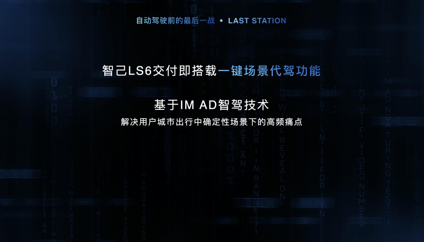 值得關(guān)注的是,作為智己汽車智能化的巔峰產(chǎn)品,即將于成都車展亮相的第三款車型智己LS6,全系具備去高精地圖的NOA能力,交付即搭載業(yè)內(nèi)首創(chuàng)的“一鍵場(chǎng)景代駕”功能,基于IM AD智駕技術(shù)解決用戶城市出行中確定性場(chǎng)景下的高頻痛點(diǎn)。