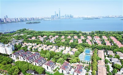 江蘇省蘇州市近年持續(xù)推動(dòng)生態(tài)文明建設(shè),有效改善城區(qū)河湖水質(zhì),構(gòu)建綠色生態(tài)宜居城市。圖為坐落在蘇州市金雞湖畔的居民住宅區(qū)。華雪根攝(人民視覺(jué))