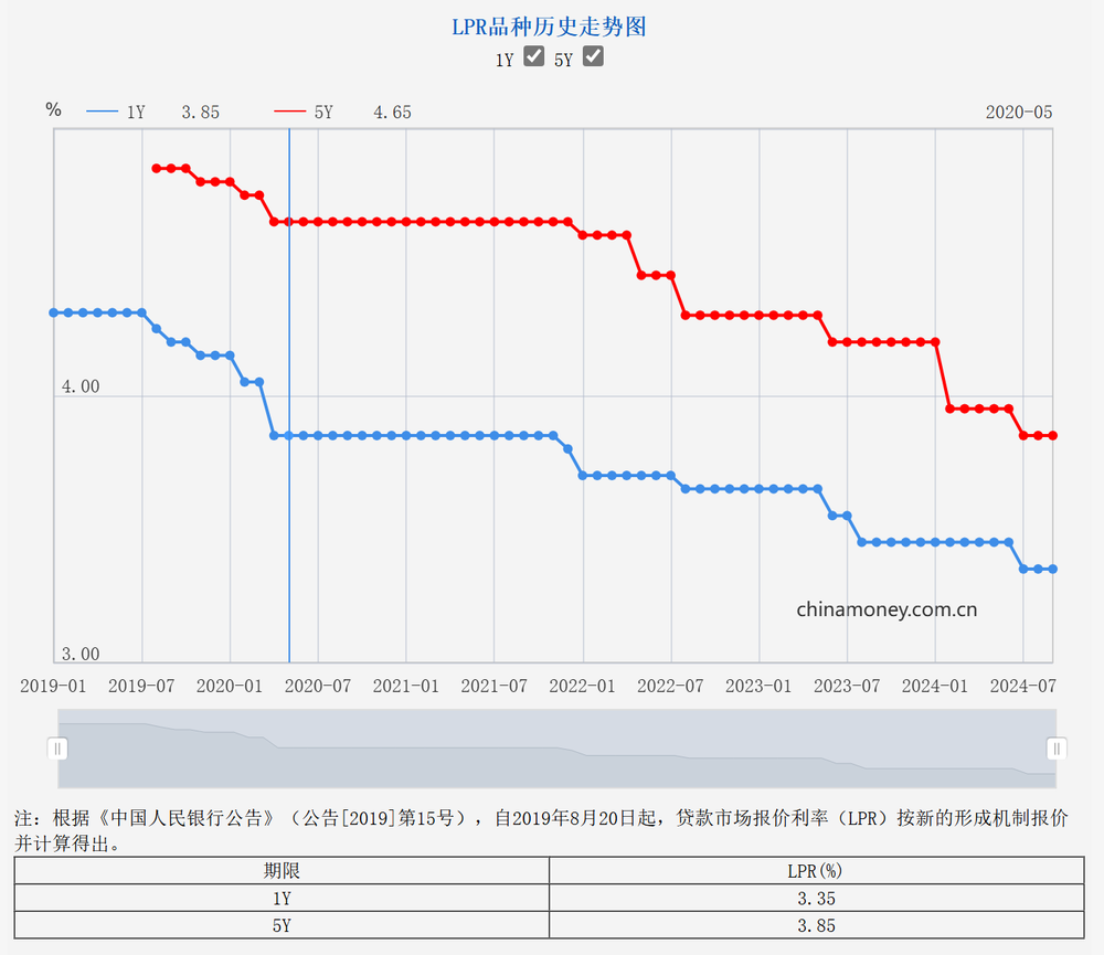 2024年9月20日,全國銀行間同業(yè)拆借中心公布新版LPR報價:1年期品種報3.35%,上月為3.35%;5年期以上品種報3.85%,上月為3.85%。數(shù)據(jù)顯示,最新LPR維持不變,這使得市場預期落空。