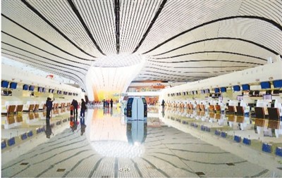 作為一個(gè)國(guó)際化的大型機(jī)場(chǎng),北京大興國(guó)際機(jī)場(chǎng)在多項(xiàng)環(huán)保節(jié)能技術(shù)上都處于世界領(lǐng)先水平。胡慶明攝(人民圖片)