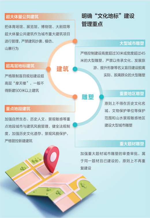 當(dāng)前,隨著城市發(fā)展,建設(shè)“文化地標(biāo)”成為城市構(gòu)筑文化空間、樹(shù)立城市形象的選擇。專家和讀者建議,為杜絕濫建“文化地標(biāo)”,一方面,要引導(dǎo)樹(shù)立正確政績(jī)觀,建立制度規(guī)范、健全約束機(jī)制;另一方面,要落實(shí)地方政府責(zé)任,強(qiáng)化審批監(jiān)管、明確建設(shè)管理重點(diǎn)領(lǐng)域。同時(shí),堅(jiān)持以人民為中心,讓城市“文化地標(biāo)”更有文化。