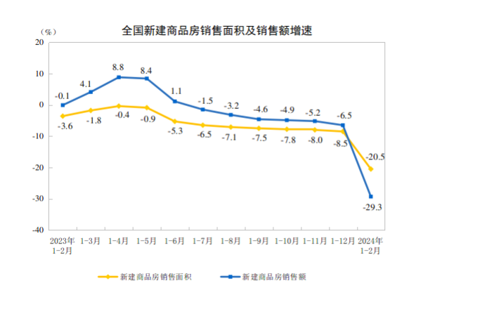 國家統(tǒng)計局數(shù)據(jù)顯示,1-2月全國房地產(chǎn)開發(fā)投資累計同比繼續(xù)下降,但降幅相比于2023年全年有所收窄。