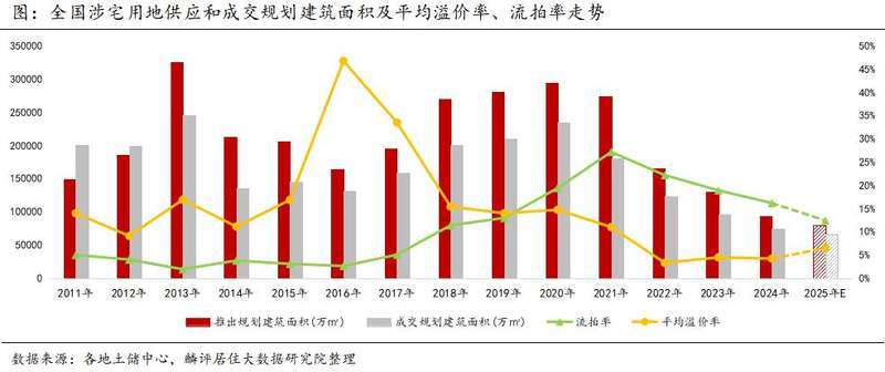 剛剛過去的2024年,全國土地市場供需兩端延續(xù)縮量態(tài)勢,溢價率低位徘徊,流拍率雖有下降但仍處于較高位。據機構統計,2024年全國住宅用地成交規(guī)模降幅超兩成,土地出讓金僅為2020年高點四成左右。聚焦高能級城市拿地投資,成為眾多房地產企業(yè)的共識。