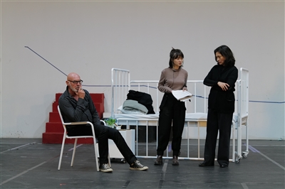 在排練過(guò)程中,埃里克盡可能地給演員們留出他們自己的創(chuàng)作空間?!按蠖鄶?shù)情況下,演員需要在導(dǎo)演引領(lǐng)下尋找與創(chuàng)造出新角色,但我想看到演員自身強(qiáng)大的生命力與創(chuàng)造力,為此我必須給他們很大的創(chuàng)作自由度。當(dāng)然,在未來(lái)的二十天里,我會(huì)非常細(xì)致精確地調(diào)整很多地方,那時(shí)他們就必須得尊重我的創(chuàng)作方式,不管是整體空間、表演節(jié)奏,還是具有舞蹈性質(zhì)的動(dòng)作,這兩部作品都將在首演之前完成煥然一新的轉(zhuǎn)變。”