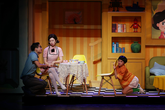 “大頭兒子”音樂話劇版導演胡曉慶介紹,音樂劇保留了原著的人設,通過“大頭兒子”穿越平行世界這個全新的故事,試圖探討父母和子女兩代人之間的溝通誤區(qū)。