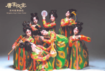 《唐宮夜宴》“復活”唐俑,以舞蹈再現(xiàn)大唐風華。這支5分鐘的舞蹈展示了唐朝少女從準備、整理妝容到夜宴演奏的全過程,14名參加夜宴的少女邊嬉笑打鬧,邊梳妝打扮,舞臺上光影流轉(zhuǎn),如同在古畫中翩翩起舞;當場景切換到正式的宮廷表演時,她們的舞姿又不失大氣恢宏,一顰一笑、舉手投足間盡顯盛唐時期的文化風情。