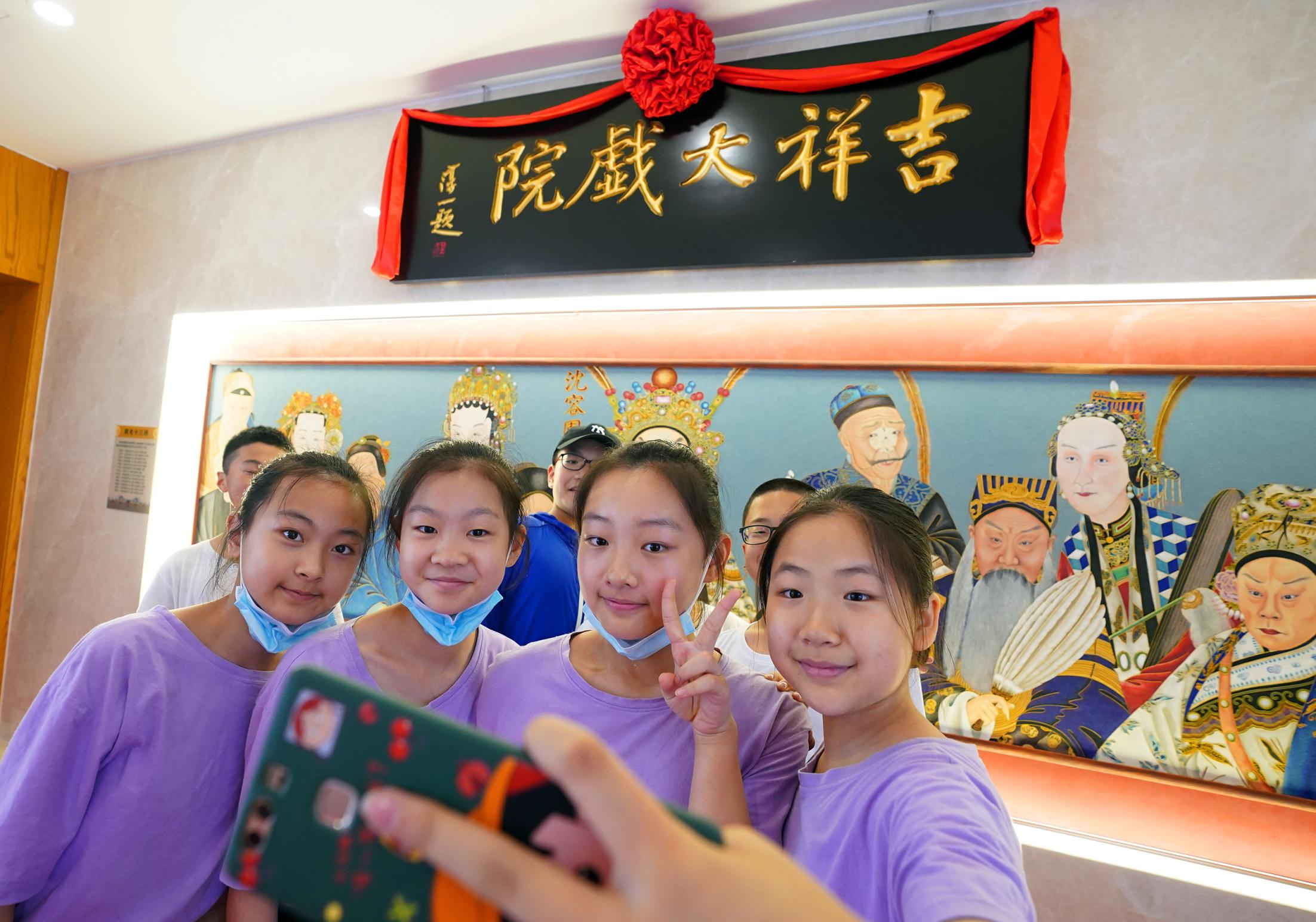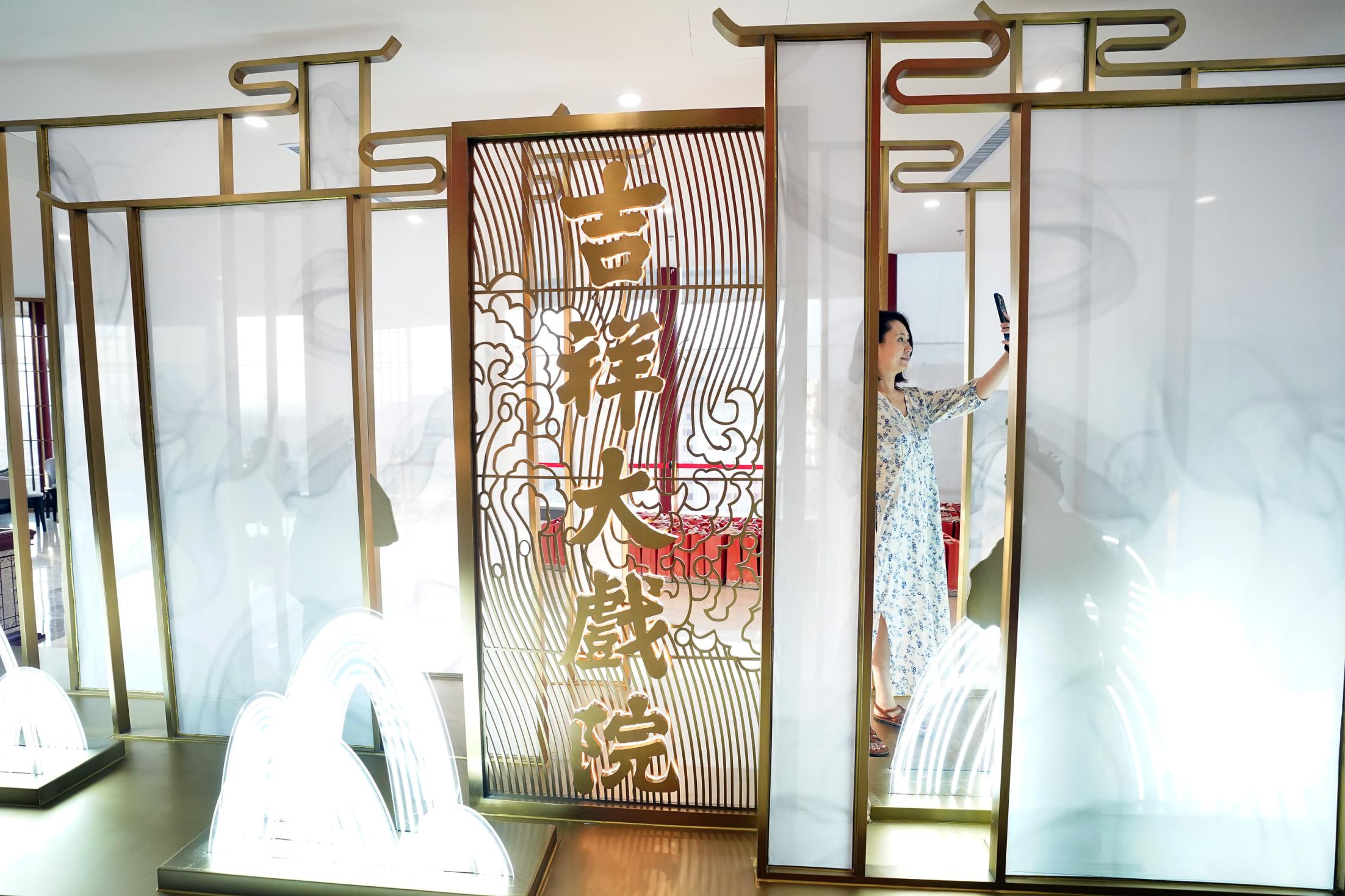 2021年7月9日,時(shí)隔28年,由北京市文化和旅游局、北京市國有資產(chǎn)經(jīng)營有限責(zé)任公司共同出資,北京京劇院、北京市演出有限責(zé)任公司共同運(yùn)營的吉祥大戲院重張啟幕。這座“藏身”于銀泰in88大廈7層、8層的空中戲院占地面積達(dá)4000平方米。乘電梯上樓,初入眼簾的前廳清新雅致,落地窗外可見王府井熙攘的人群與遠(yuǎn)處故宮、景山等古都風(fēng)光;劇場(chǎng)內(nèi),明清風(fēng)格古樸莊重,藻井彩繪繁復(fù)斑斕,傳統(tǒng)的“旋子彩繪”上增加了大量寓意吉祥的“萬字不到頭”圖案,與戲院的名字彼此呼應(yīng)。