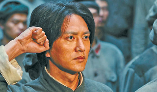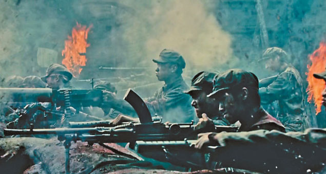 相比于以往表現毛澤東同志革命故事的作品,此次《浴血榮光》在如何表現建軍過程的影像上下了很大功夫。導演陳力做了精心設計,她讓影像不僅還原歷史,還富有更為深刻的寓意。比如,毛澤東在湖南發(fā)動秋收起義前,前往萍鄉(xiāng)安源煤礦的兵工廠,和工農兄弟一起鍛造鐮刀與斧頭等武器,他在畫面的黃金分割點慷慨演說,鋼鐵熔爐里火紅的光芒照射在他身上,充滿油畫般的力量感和造型感,也寓意著人民軍隊就誕生于工農中。