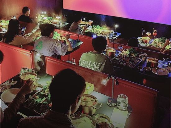 邊吃火鍋邊看電影,不只是在家里才能出現(xiàn)的場(chǎng)景,在三克映畫(huà)的電影院同樣能做到?!拔覀兿M麑⑷擞钞?huà)打造成一個(gè)集電影、美食、小型演出以及娛樂(lè)活動(dòng)等為一體的空間?!逼放苿?chuàng)始人韓春暉表示,通常情況下,在三克映畫(huà)放映的電影與院線同步,不過(guò)在和餐飲搭配的電影選擇上,也是有講究的。他說(shuō),影院通常會(huì)選擇放映一些比較輕松、娛樂(lè)性較強(qiáng)的電影。