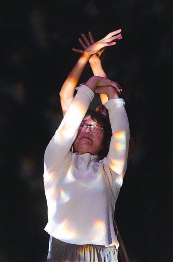 法魯克和余秀華合作詩歌舞蹈劇場作品《萬噸月色》,試圖把詩里的“陰影”意象轉化成某種新鮮的舞臺象征——讓詩人在光與暗交錯的空間里跳舞,在不同尺寸的“陰影”下舞蹈,表達不同生命階段對“陰影”的感受。(均受訪者供圖)