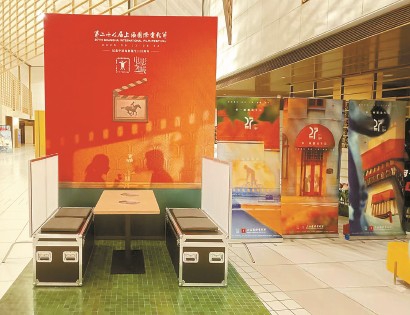 在陸家嘴百麗宮影城的主視覺(jué)海報(bào)前,一桌二椅皆成實(shí)景,影迷可以入內(nèi)拍照留念,也可在此交談、小憩。 上海國(guó)際電影節(jié)供圖