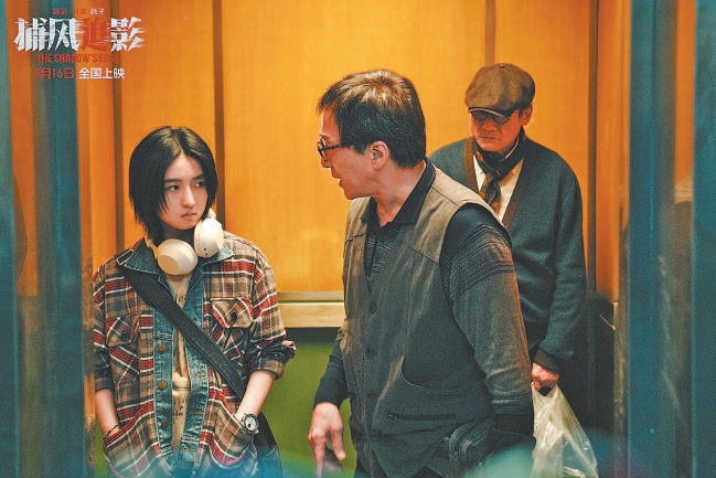 最終,《捕風(fēng)追影》在《跟蹤》基礎(chǔ)上,架構(gòu)了一個(gè)全新的時(shí)代背景。影片開始,犯罪團(tuán)伙居然在攝像頭和人工智能監(jiān)視下突然消失,讓警方的破案進(jìn)程一下子陷入僵局。關(guān)鍵時(shí)刻,成龍飾演的退休跟蹤專家黃德忠被警方重新啟用,他建議成立“跟蹤隊(duì)”,對(duì)可疑分子進(jìn)行實(shí)時(shí)跟蹤,故事由此展開。