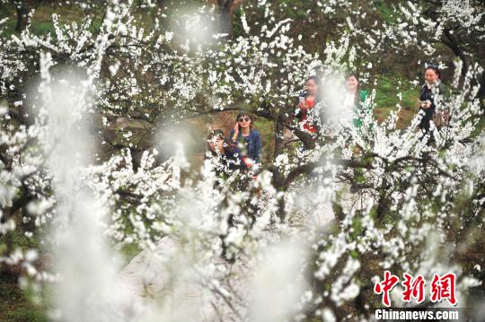 3月8日,重慶銅梁“花果山”成片的李子樹、梨樹、櫻桃樹等多種果樹的花朵競相綻放,漫山遍野潔白的花朵形成了一道美麗的風景線,吸引不少市民前來踏青。