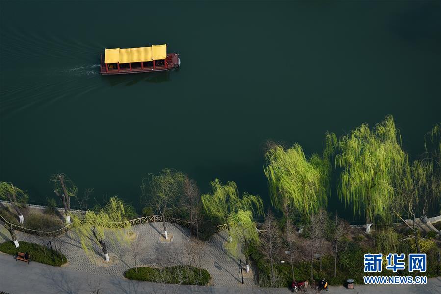 3月17日,山東濟(jì)南大明湖畔楊柳吐翠,杏花飄香,市民踏春游湖盡享明媚春光。 新華社記者 郭緒雷 攝