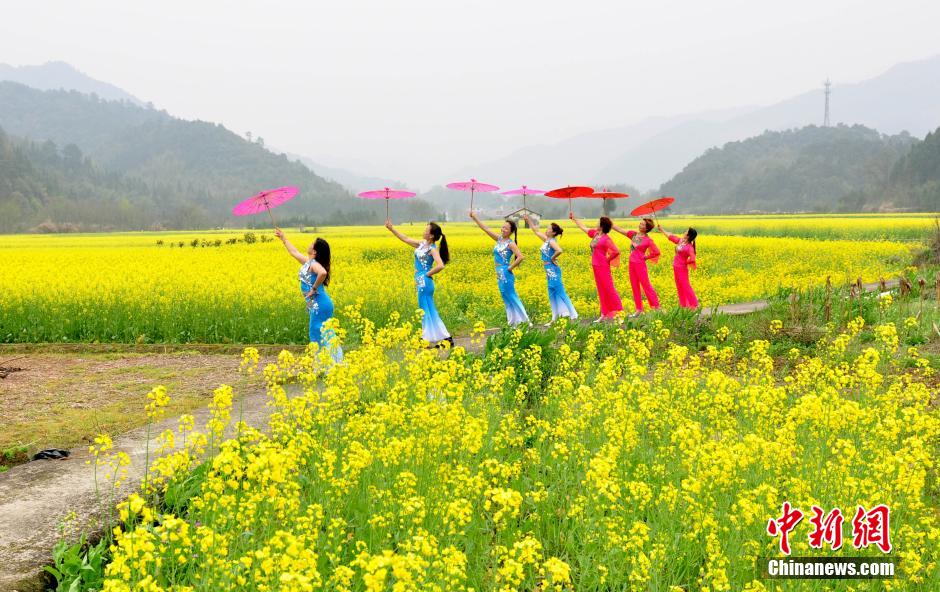 3月20日,江西省德興市??阪?zhèn)杜村婦女在田間花?!白咝恪?。當(dāng)日,江西德興市??阪?zhèn)杜村一批家庭婦女以千畝油菜花海為舞臺,展示自己的才藝形象,希望宣傳家鄉(xiāng)的自然生態(tài)與人文歷史,擴大旅游知名度和影響力。德興市??阪?zhèn)杜村交通便利,自然風(fēng)光優(yōu)美,村內(nèi)有歷史古跡和名木古樹。 胡敦煌 攝