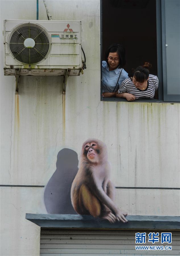 浙江省長興縣北湯村的村舍墻壁上繪有3D畫(7月13日攝)。 7月初,由上海的藝術家團隊繪制的多幅3D藝術畫亮相浙江省長興縣林城鎮(zhèn)北湯村的村舍墻上。林城鎮(zhèn)北湯村是浙江省長興縣新農(nóng)村建設示范點,此次繪制3D藝術畫墻,是該村提升農(nóng)村品味、打造“詩畫北湯”的新舉措。 新華社記者徐昱攝