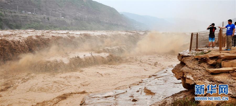 近日,受上游地區(qū)強(qiáng)降雨天氣影響,位于山西吉縣和陜西宜川縣交界的黃河壺口瀑布水量大漲。目前,壺口景區(qū)已啟動(dòng)應(yīng)急預(yù)警,工作人員加強(qiáng)上游水情監(jiān)測(cè)并加大安全巡查力度,確保游客安全。新華社發(fā)(呂桂明 攝)
