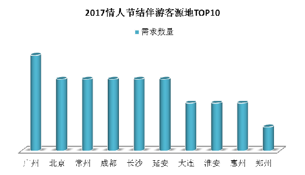 客源分布方面,廣州、北京、常州、成都、長沙、延安、淮安、惠州、鄭州等是在線結伴出游需求最為旺盛的十個城市。