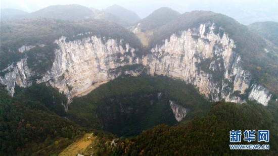 這是11月28日航拍的重慶奉節(jié)小寨天坑。小寨天坑位于重慶市奉節(jié)縣興隆鎮(zhèn)小寨村,坑深666米,是聞名中外的世界地質(zhì)奇觀。 新華社發(fā)