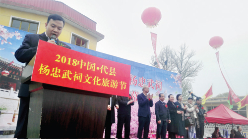 本報(bào)訊 為了弘揚(yáng)楊家將忠勇愛(ài)國(guó)的名將精神,提升楊忠武祠的知名度和影響力,由中共代縣縣委宣傳部、代縣文化旅游發(fā)展委員會(huì)、代縣新聞辦公室、代縣廣播電視臺(tái)主辦,代縣棗林鎮(zhèn)人民政府協(xié)辦的楊忠武祠文化旅游節(jié)4月13日——24日在鹿蹄澗村隆重舉行,此次旅游節(jié)嘗試文化+旅游+體育的模式促進(jìn)代縣文化旅游發(fā)展,旨在弘揚(yáng)傳統(tǒng)文化,助推鄉(xiāng)村振興,傳播健康綠色運(yùn)動(dòng)。