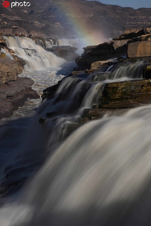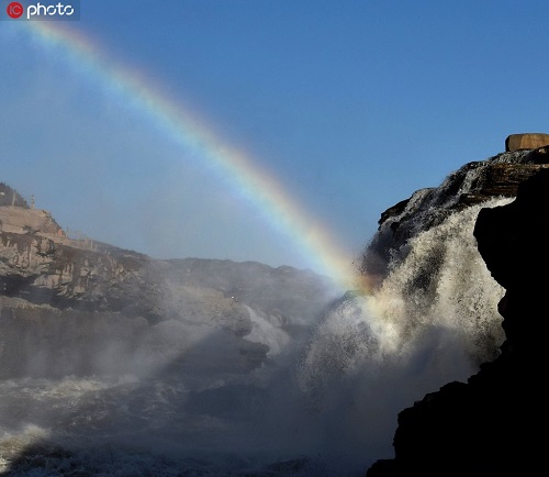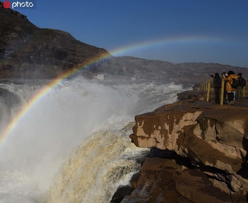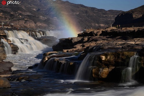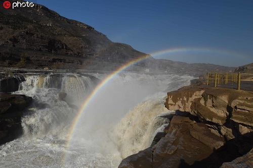 山西黃河壺口瀑布現(xiàn)“彩虹通天”美景