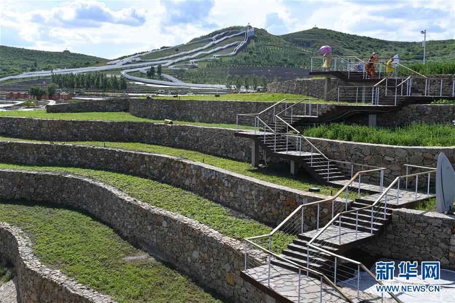 這是烏蘭浩特市天駿山景色(6月30日攝)。 天駿山位于內蒙古自治區(qū)興安盟烏蘭浩特市郊區(qū),曾因采挖石料而造成山體裸露,植被匱乏,山體上留下了多處深坑。近年來,當?shù)卣哟笊鷳B(tài)修復力度,為天駿山增添綠色,將荒山改造成旅游景區(qū),吸引游客前往游玩。 新華社記者 劉磊 攝