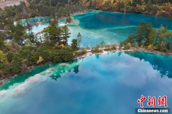 10月23日,深秋時(shí)節(jié),四川九寨溝如同油畫(huà)一般,漫山遍野的紅葉絢麗多彩,與清澈見(jiàn)底的湖水交相輝映,美輪美奐,“秋日童話”正上演。 張浪 攝