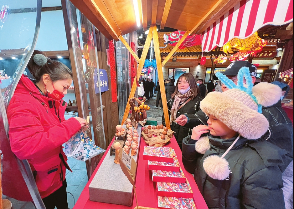 一月二十七日晚,忻州古城,游客正在選購民間手工藝品。春節(jié)期間,忻州古城推出了“中國(guó)年·在忻州”系列活動(dòng),傳統(tǒng)習(xí)俗與本地特色融合,廣大市民及游客體驗(yàn)到了別具特色的年味。本報(bào)記者李兆民攝