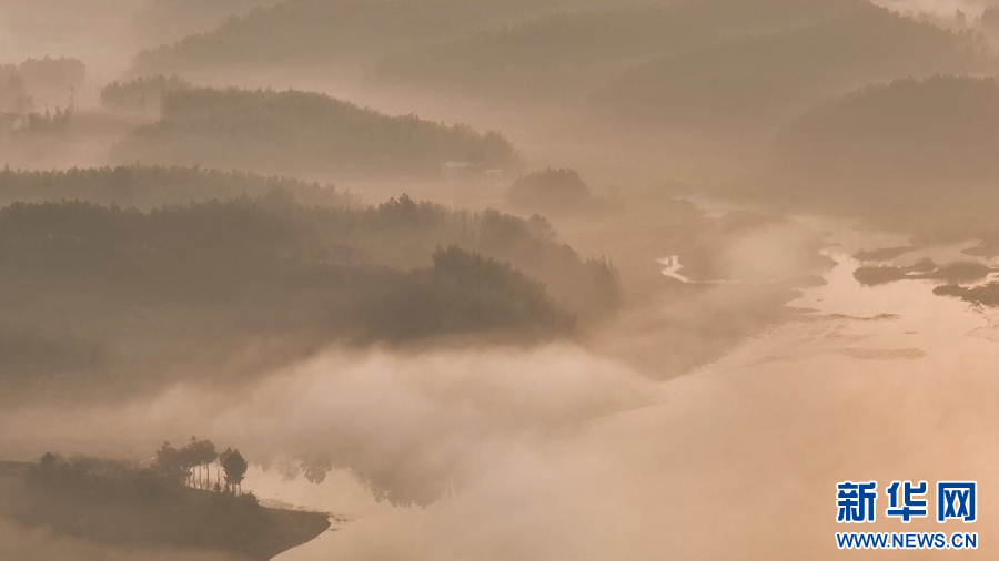 日前,安徽省郎溪縣天子湖景區(qū)出現(xiàn)云霧日出美景,一輪紅日從湖面升起,霞光將樹(shù)葉、怪石、湖水渲染……宛如一幅充滿(mǎn)詩(shī)意的山水畫(huà)。