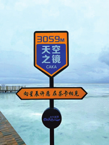 茶卡鹽湖為游客安排了不少浪漫意境打卡點,一邊是美景,一邊是柔情,平均海拔3059米的天空之境寫著“向星辰許愿,在茶卡相見”。坐在小木船上,與落日余暉暈染的天空合影,就能有一張“天荒地老”的收藏紀念照。逛累了,嘗一支與湖同色的雪糕,給美景涂上奶油味,留下甜蜜記憶。
