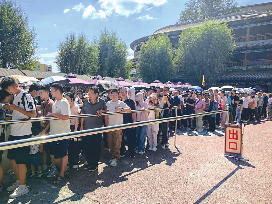 中秋小長假期間,隰縣小西天景區(qū)游客數(shù)量暴漲,圖為游客們有序排隊。杜磊攝