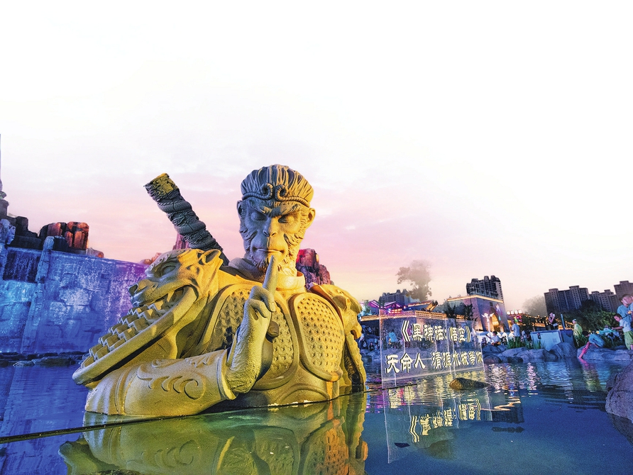 大寶船舞臺上的表演、飛流直下的疊水瀑布、5D裸眼大屏、蓮花池里的烏篷船,自然美景與各種元素相融,給這里帶來了沉浸式文旅消費(fèi)新場景;