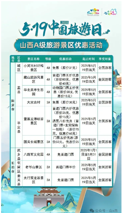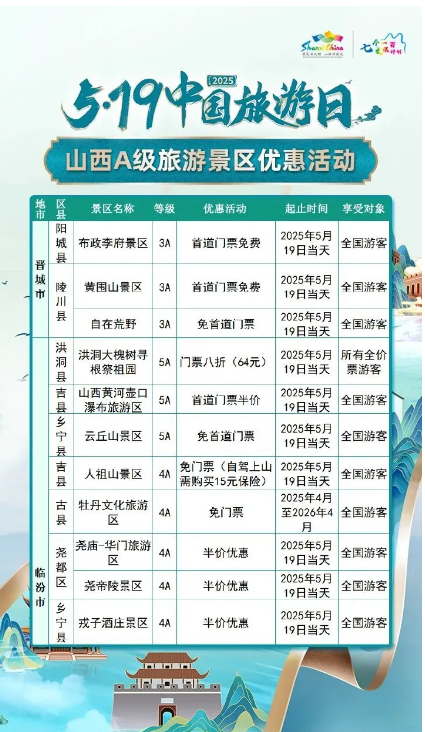 5·19中國旅游日 | 山西A級旅游景區(qū)面向全國游客優(yōu)惠