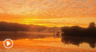 云南普洱:日光透薄霧 霞彩鋪天際