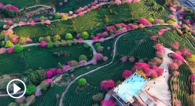 近日,福建漳州臺品櫻花園的櫻花悄然盛放,漫山遍野的櫻花與層層疊疊的茶山交相輝映,粉紅花海點(diǎn)綴翠綠茶壟,構(gòu)成一幅生機(jī)勃勃的春日畫卷。