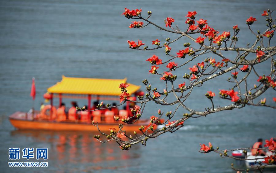 2月20日,游客在昌江霸王嶺觀賞木棉花。早春時節(jié),海南省昌江黎族自治縣的木棉花競相綻放,吸引大批游客前來踏春賞花。 新華社記者 郭程 攝