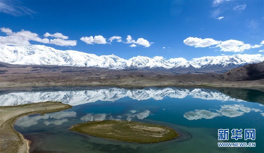 公格爾九別峰倒映在卡拉庫(kù)里湖里(6月7日攝)。6月的帕米爾高原風(fēng)光旖旎,吸引國(guó)內(nèi)外大量游客前來領(lǐng)略它的神韻。 新華社記者趙戈 攝