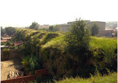 在五寨縣有兩個武王村,有杏嶺子鄉(xiāng)前武王城村和東秀莊鄉(xiāng)后武王城村,兩村相連處,有武王城遺址。遺址四面環(huán)山,平面呈長方形,城墻依山而建,東西長約2500米,南北寬約1500米,周長約8000米。城內(nèi)分為南北兩部分,城墻殘高0.5—7米,沿城墻四周共建有六個甕城,西面甕城保存完好。甕城平面呈半圓形。