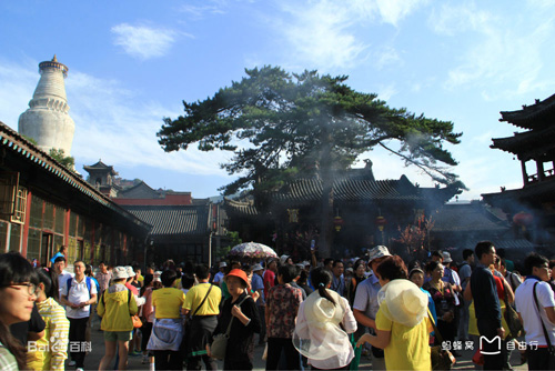 五爺廟也稱萬佛閣座落于臺(tái)懷鎮(zhèn),與大白塔相毗鄰,是通往顯通寺的又一條路徑。寺廟地勢(shì)開闊,當(dāng)年是大清歷代皇帝朝臺(tái)寢宴的行宮,俗稱“皇城”?!盎食恰敝寥f佛閣之間,終年涌動(dòng)著接踵而至的羲圣觀光者。