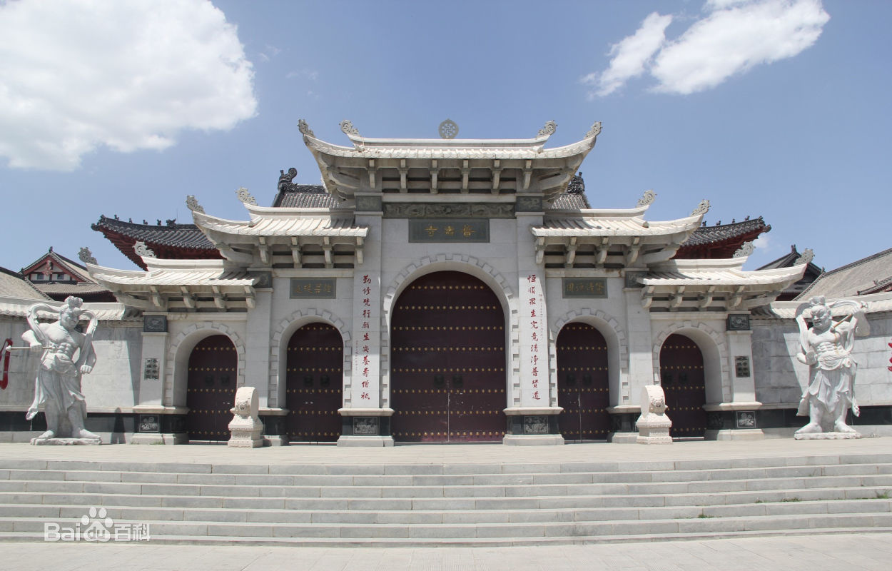 新建的普壽寺坐北面南,占地面積一萬九千九百八十八平方米。寺內(nèi)分為東西兩院,東院偌大,前面為非常秀麗的漢白玉牌樓,下層為青磚砌筑,上層為木構(gòu)建筑,單檐五脊頂,四出廊。山門正面額上嵌一書有「普壽寺」三字的石匾。西院一進(jìn)四個(gè)小四合院,第一為天王殿院,正面為天王殿,三開間,單檐歇山頂。殿內(nèi)正中置木龕,供石刻彌勒佛,背面供彩塑韋馱將軍,兩山間彩塑四大天王。天王殿兩側(cè)為鐘鼓二樓。東西樓二十四間,東配樓為客堂,墻上掛著名人字畫,其中有原中國(guó)佛教協(xié)會(huì)會(huì)長(zhǎng)趙樸初書寫的一副對(duì)聯(lián)「恒順眾生究竟清涼普賢道,勤修梵行愿生安養(yǎng)壽僧祗」。