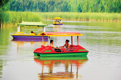 近日,原平市市民正在公園湖里劃船,有說(shuō)有笑,暢談生態(tài)環(huán)境給大家?guī)?lái)的福祉。原平重視綠色發(fā)展,從“心”重視開始,把綠色理念貫穿在環(huán)境保護(hù)、生產(chǎn)發(fā)展中,從綠色設(shè)計(jì)、綠色生產(chǎn)、綠色運(yùn)行、綠色回收、綠色再生產(chǎn)到應(yīng)用綠色能源、使用綠色包裝、實(shí)施綠色營(yíng)銷、開展綠色貿(mào)易等,不斷豐富著綠色發(fā)展的內(nèi)涵和外延。(吉建平 攝)