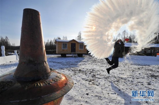 第五屆中國冷極節(jié)開幕 12月24日,在位于內蒙古呼倫貝爾市的根河林業(yè)局517工隊,一名男子嘗試“潑水成冰”。當日,第五屆中國冷極節(jié)在內蒙古自治區(qū)根河市開幕。根河市素稱“中國冷極”,當地利用冰雪資源,并結合獨特的鄂溫克民族風情,打造冬季旅游項目,為游客帶來不一樣的冰雪體驗。新華社記者李任滋攝