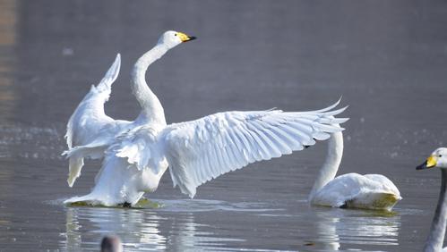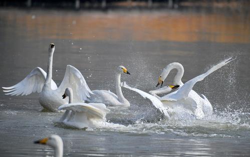 隨著天氣逐漸轉(zhuǎn)暖,在平陸黃河濕地越冬的白天鵝迎來北遷高峰,返回西伯利亞。平陸黃河濕地是國內(nèi)白天鵝越冬地之一,每年到此越冬的白天鵝數(shù)量在1萬只左右。薛俊  攝影報道