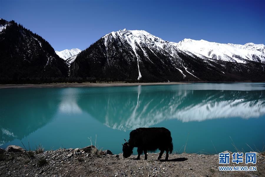 這是4月27日拍攝的然烏湖風(fēng)光。 然烏湖位于西藏八宿縣境內(nèi),湖水與雪山、藍(lán)天相互映襯,景色如畫。 新華社記者 詹彥 攝