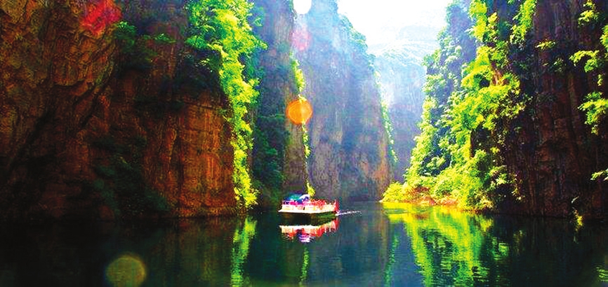 “太行深谷留客佇,龍巖險峽著人驚?!辈饺臊垘r大峽谷,紅巖絕壁,靜水幽潭,狹溝深谷,罕見的地質(zhì)構(gòu)造、奇特的地形地貌和清麗的生態(tài)環(huán)境,猶如仙境一般。