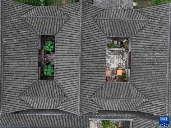 7月11日拍攝的穆溝古村民宿(無(wú)人機(jī)照片)。