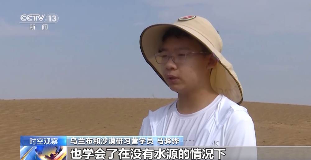 烏蘭布和沙漠研習(xí)營學(xué)員 馬驛驊:通過這次研學(xué)之旅沙漠徒步,學(xué)會了在沒有指南針的情況下,如何用各種辦法來判別方向,也學(xué)會了在沒有水源的情況下,如何獲得水源。