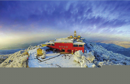 待紅葉褪盡,人祖山就進(jìn)入蕭瑟之冬了。瑞雪飄滿人祖山的溝溝坎坎時(shí),最愜意的事情就是上山看雪景。驟雪初霽,站立于山頭,世界是一種相對(duì)的靜態(tài)。潔白的雪把冬日里沒能驅(qū)散寒意的太陽襯得更高更亮。在陽光照射下,人祖山的天空是透徹明凈的藍(lán),逾越生命,穿越歲月,闖入銀裝素裹的世界。放眼望去,漫山的青松、紅梅與白雪形成紅綠白相間的美麗畫面,令人陶醉。